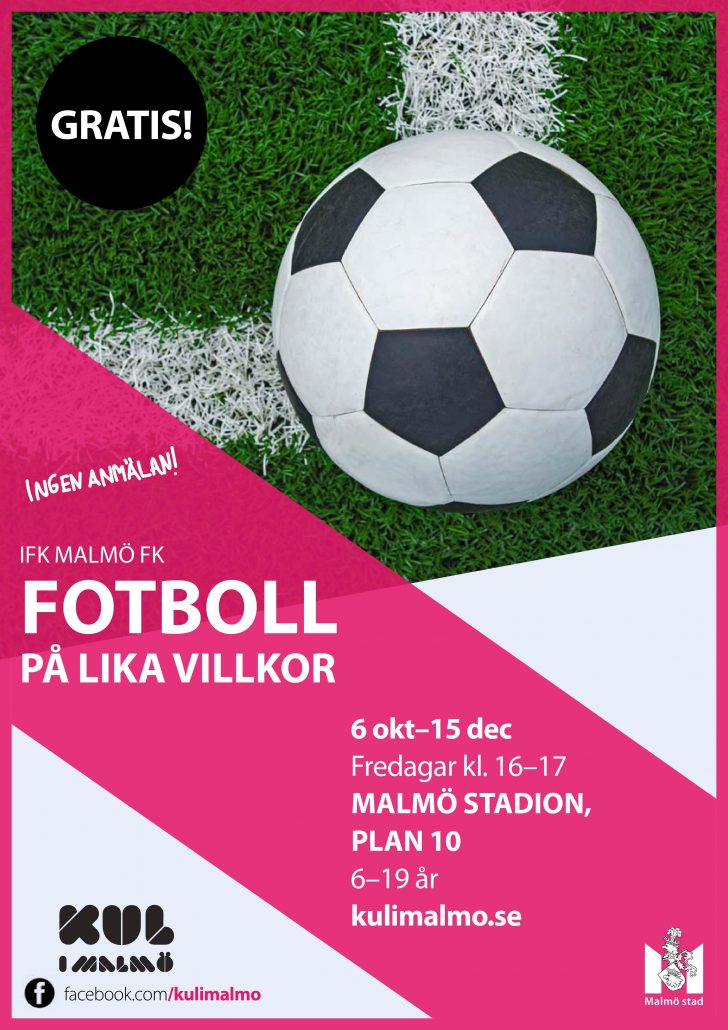 Ta chansen att spela fotboll under spontana former. IFK Malmö erbjuder dig mellan 6 och 19 år att kostnadsfritt testa på sporten varje fredag till och med 15 december.