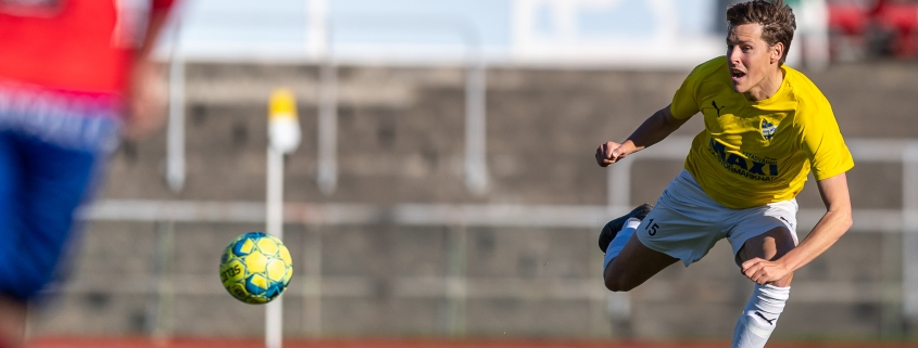 28-årige mittbacken Henrik Ahlberg är klar för en ny säsong i IFK Malmös gula tröja. Foto: Christoffer Borg Mattisson/Bildbyrån 2020