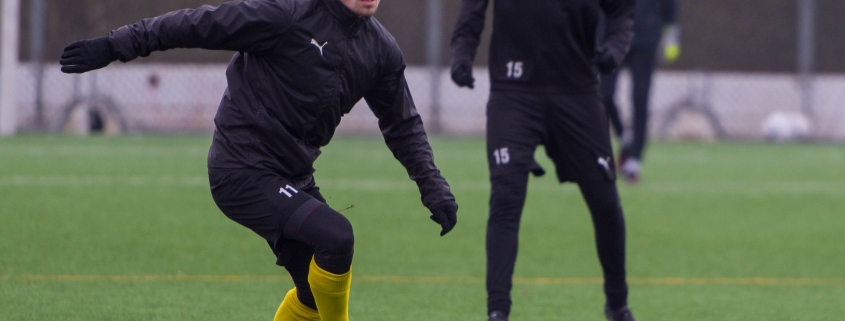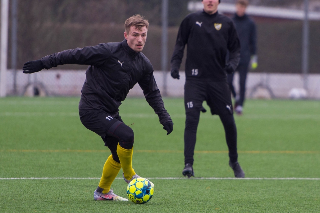 Skivarps GIF-fostrade Jesper Rindmo kommer på nytt att representera IFK Malmö. Här är han i fokus på lördagens träning. Foto: Lola Nilsson
