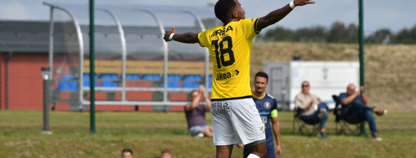 Ahmed Ismail Abdi jublar efter att ha gjort sitt första mål i den gula tröjan. Foto: Ibrahim Miftar