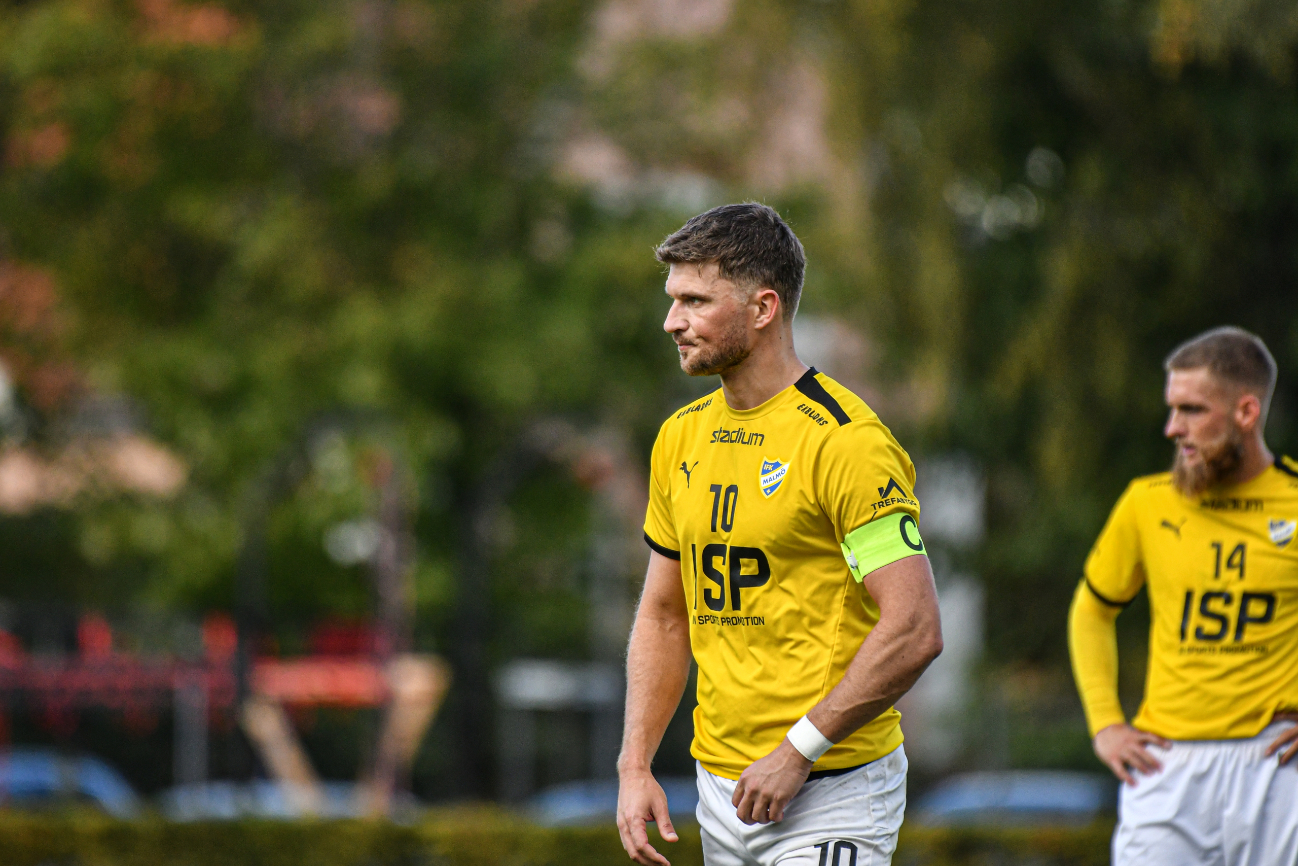 Det blir inget kvalspel till division 2 för IFK Malmö. Här ses tvåmålsskytten Erik Pärsson under andra halvlek. Foto: Ibrahim Miftar