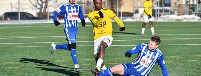 IFK Malmös Mikail Yusuf Mohamed i en offensiv räd under träningsmatchen mot Tomelilla IF. Foto: Lukman Miftar
